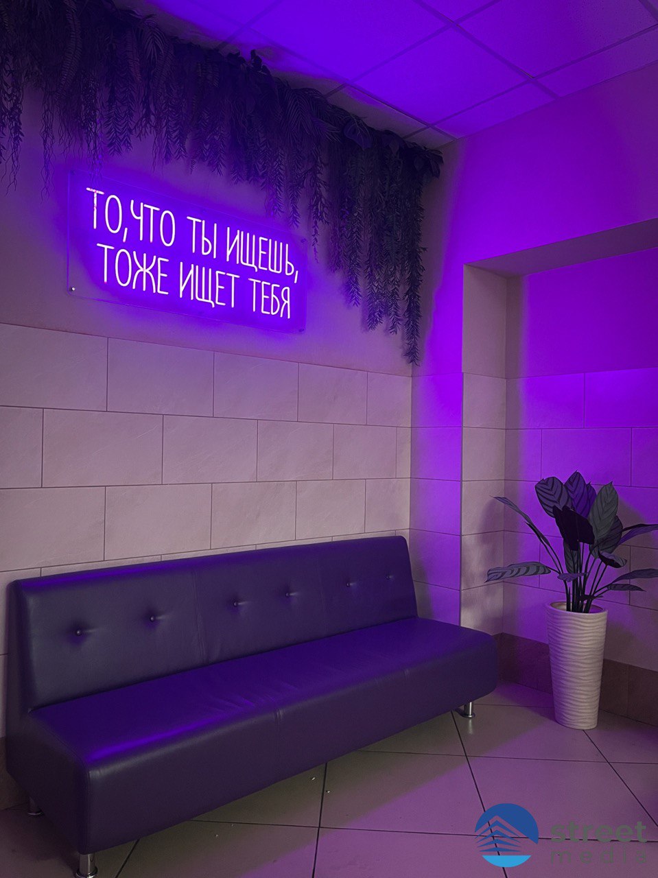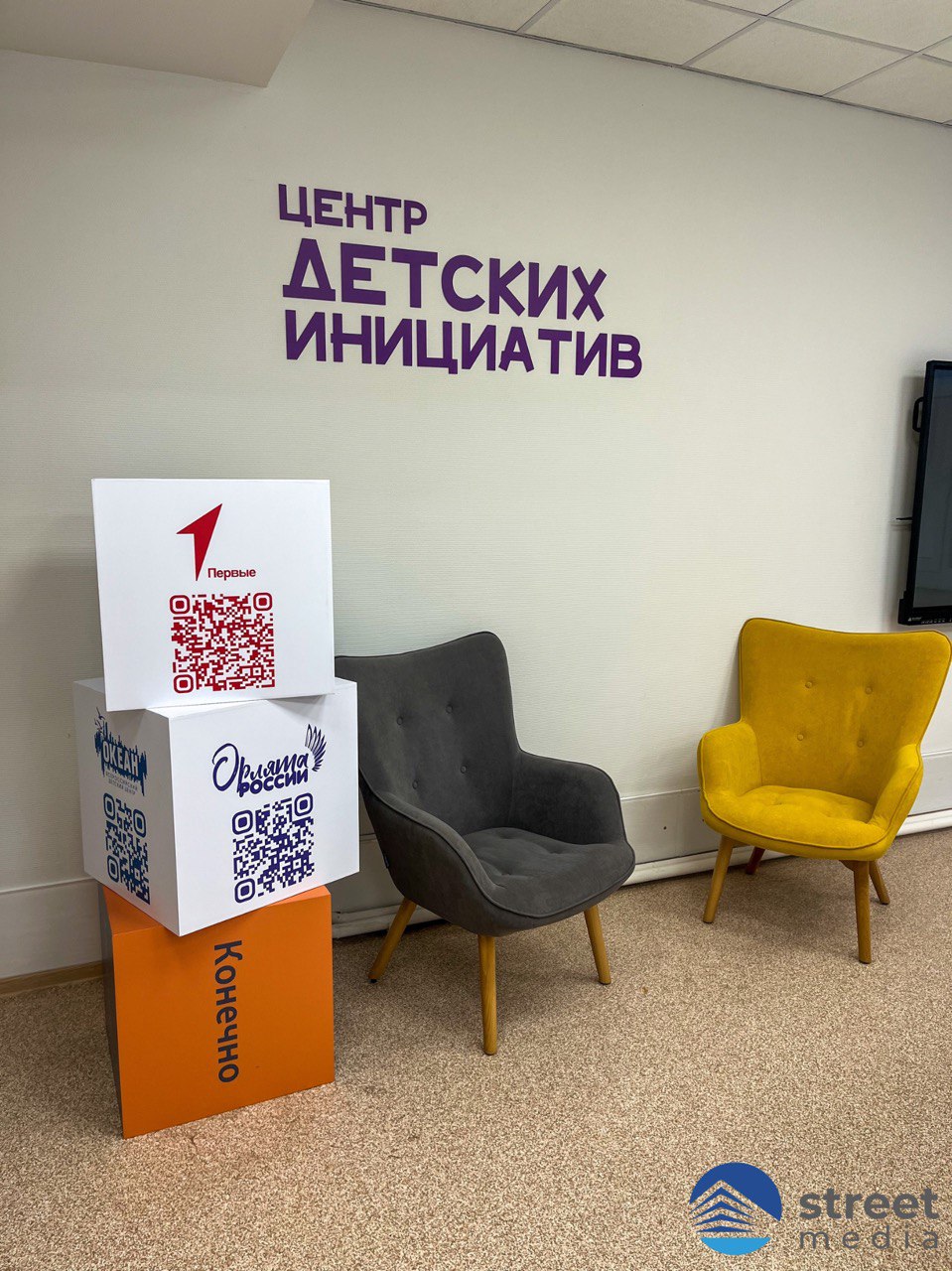Работы включали изготовление и установку современной неоновой вывески, а также оформление внутренних пространств «Центра детских инициатив».