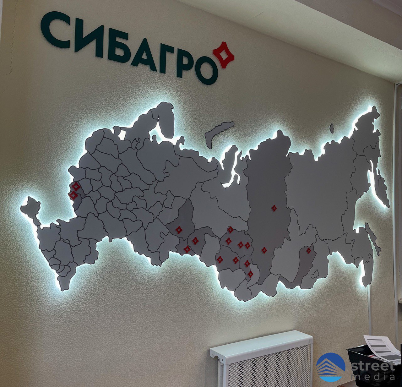 Наша команда закончила проект по изготовлению и установке интерьерной карты для крупного российского холдинга «Сибагро».