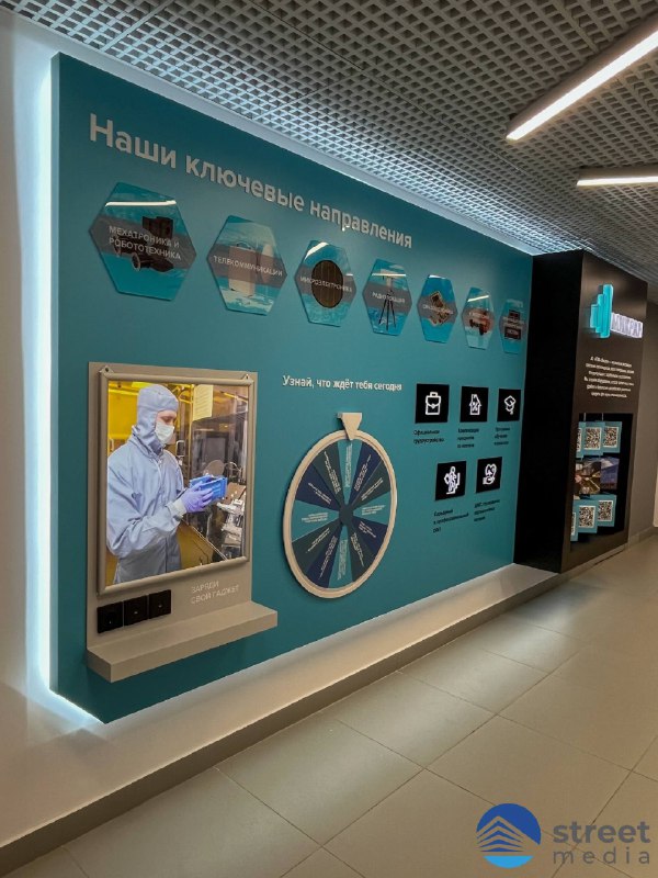 Компания Street Media продолжает реализовывать комплексные проекты по оформлению образовательных и общественных пространств, объединяя современный дизайн, функциональность и высокое качество исполнения.