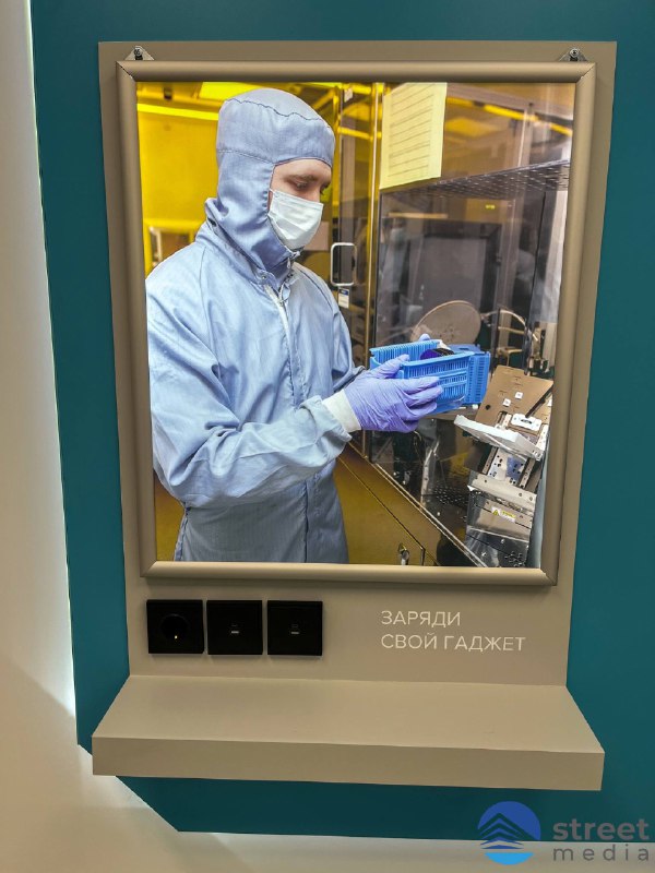 Конструкция также оснащена функциональной полкой и портами для зарядки мобильных устройств, благодаря чему стенд может использоваться в качестве Power-станции для студентов и посетителей корпуса.